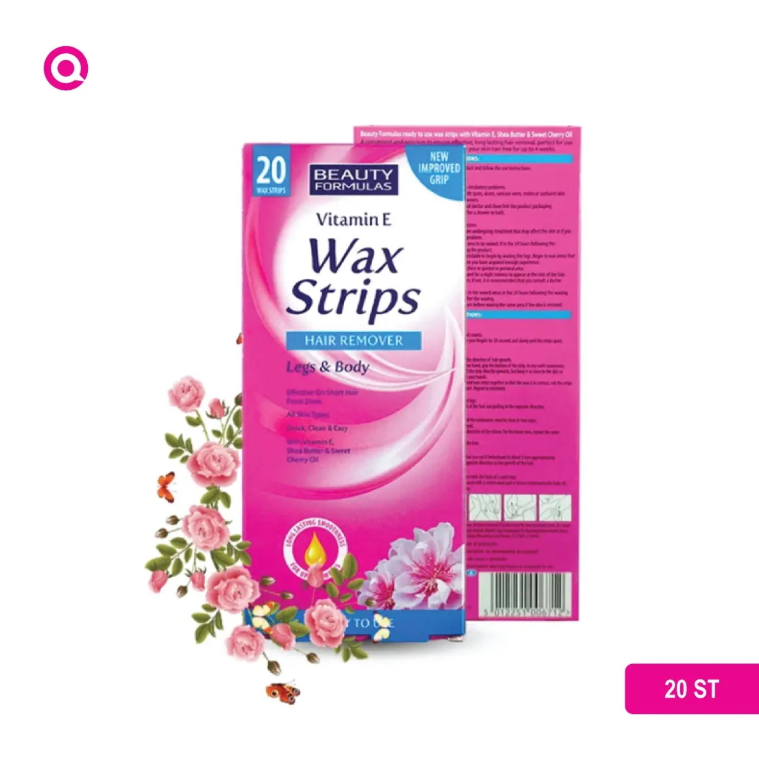BEAUTY FORMULAS Hair Removal Wax Strips Legs and Body 20 Wax Strips
