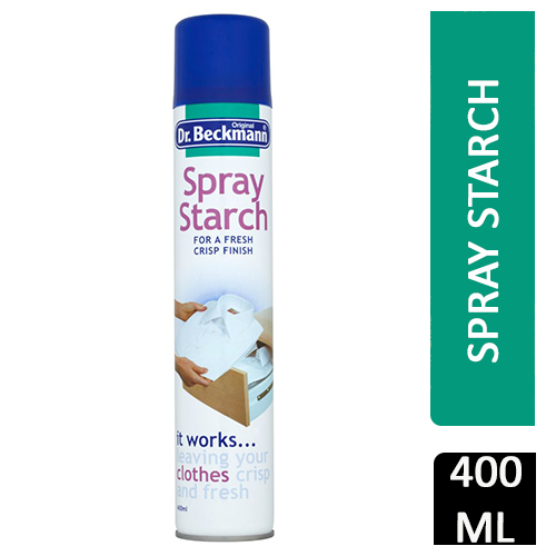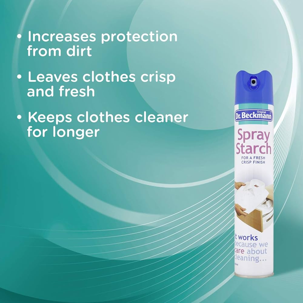 Dr. Beckmann Spray Starch comes in a convenient 400 ml aerosol can and is formulated to stiffen and crisp fabrics, resulting in a freshly ironed appearance. This product is particularly suitable for a variety of clothing items, including shirts, trousers, and dresses, as well as household textiles like tablecloths.