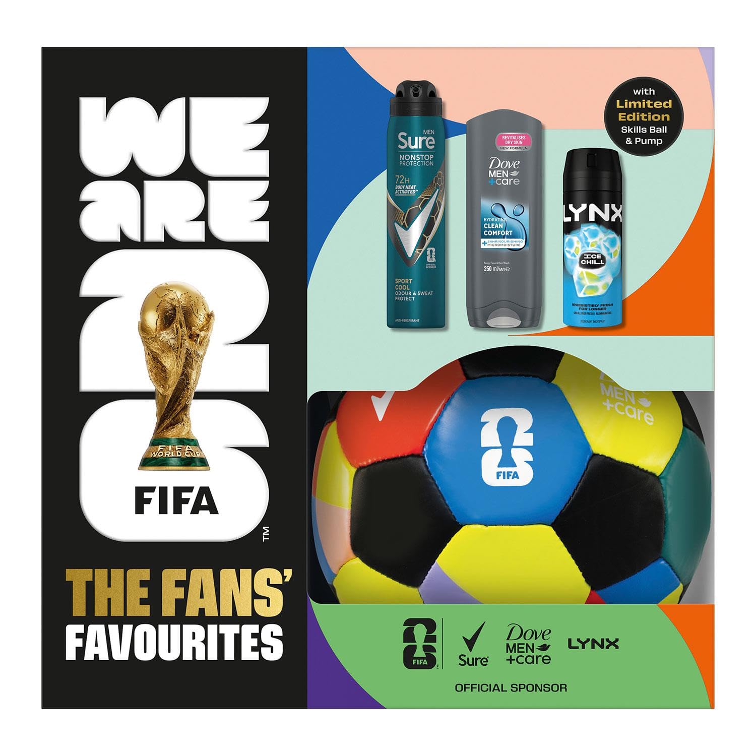 Limited edition personal care gift set with a sporty theme and everyday essentials, inclufes mini fifa football, and two deodorant and pump.