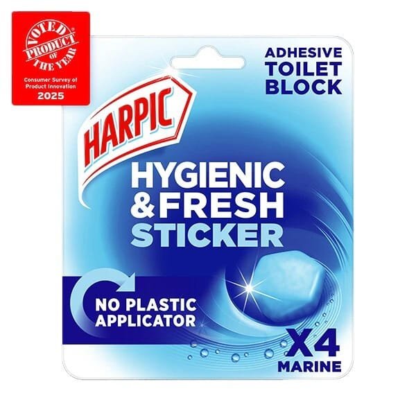 Harpic Hygiene & Fresh Stickers Adhesive Toilet Block Marine 4 PCS