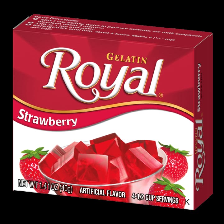 Sweet strawberry-flavored gelatin dessert with zero fat.